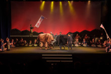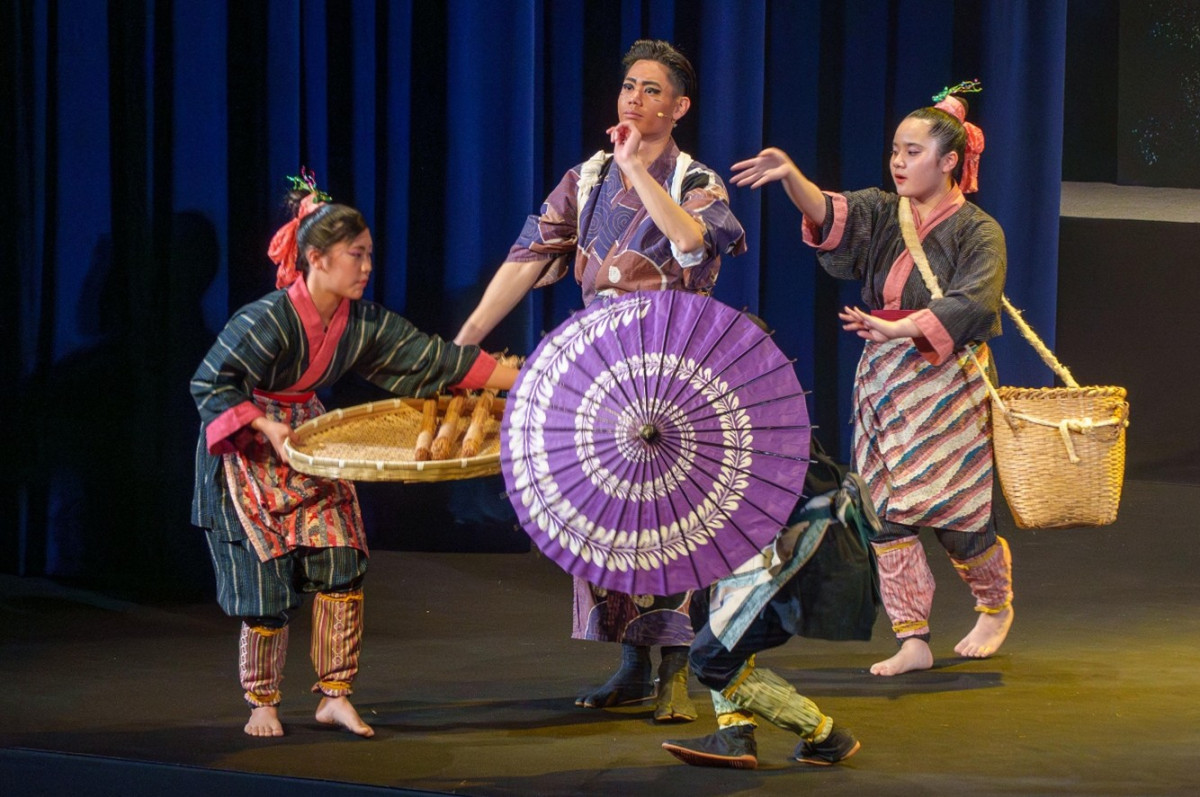 主食である稲作刈り取りの様子を表現したシーン(写真提供=結シアター手舞)