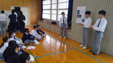 沖永良部島の都市伝説について調べた内容を発表する様子(右端から、撰さん、和田さん、松尾さん)