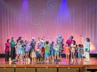 与論島の文化発信と次世代育成を目的とした舞台公演「子どもも大人もたのしめるこどものがたり」が3月22日、砂美地来館(与論町茶花)で上演された。