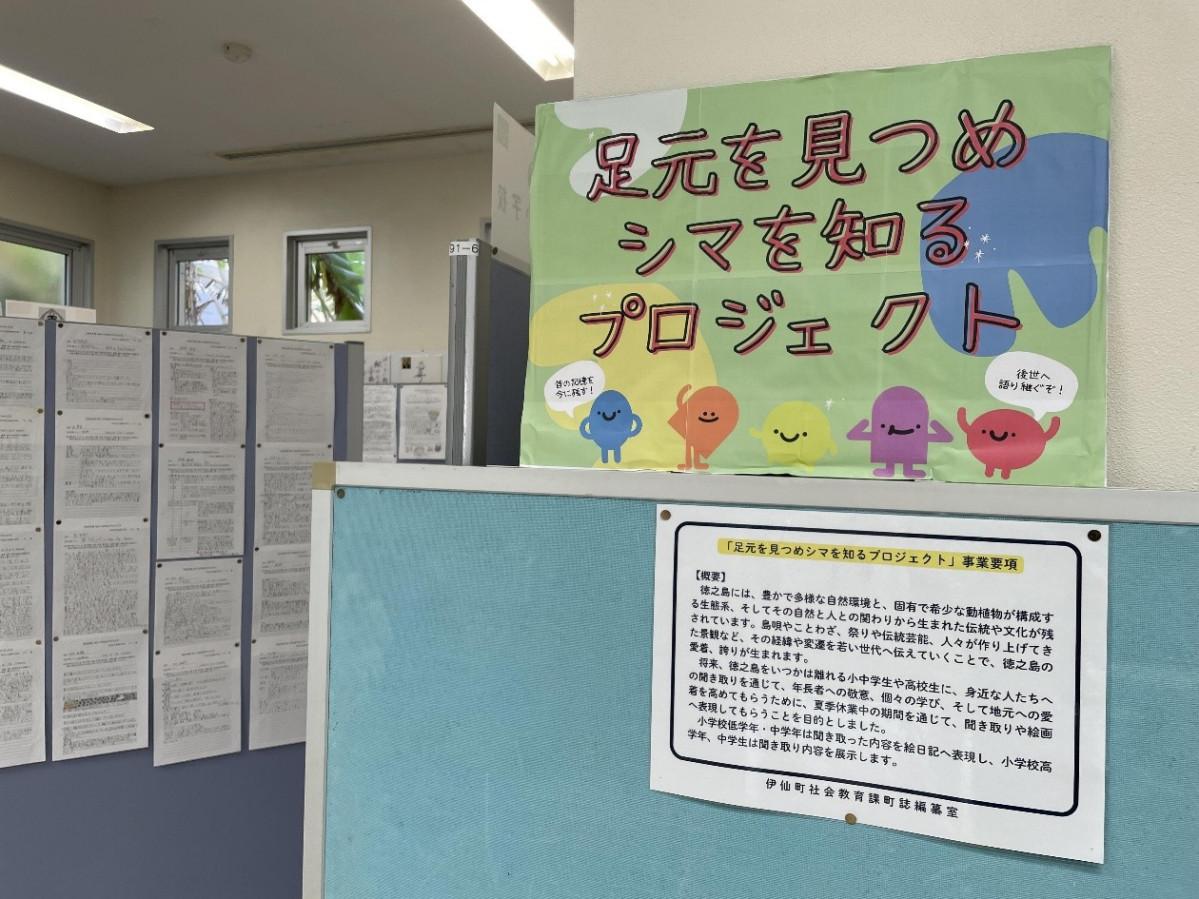 伊仙町教育委員会社会教育課が企画し、夏季休業期間を通じて実施された「足元を見つめシマを知るプロジェクト」の作品が現在、徳之島交流ひろば「ほーらい館」(伊仙町伊仙)で展示されており、多くの利用者が足を止めて子どもたちの感性に触れている。