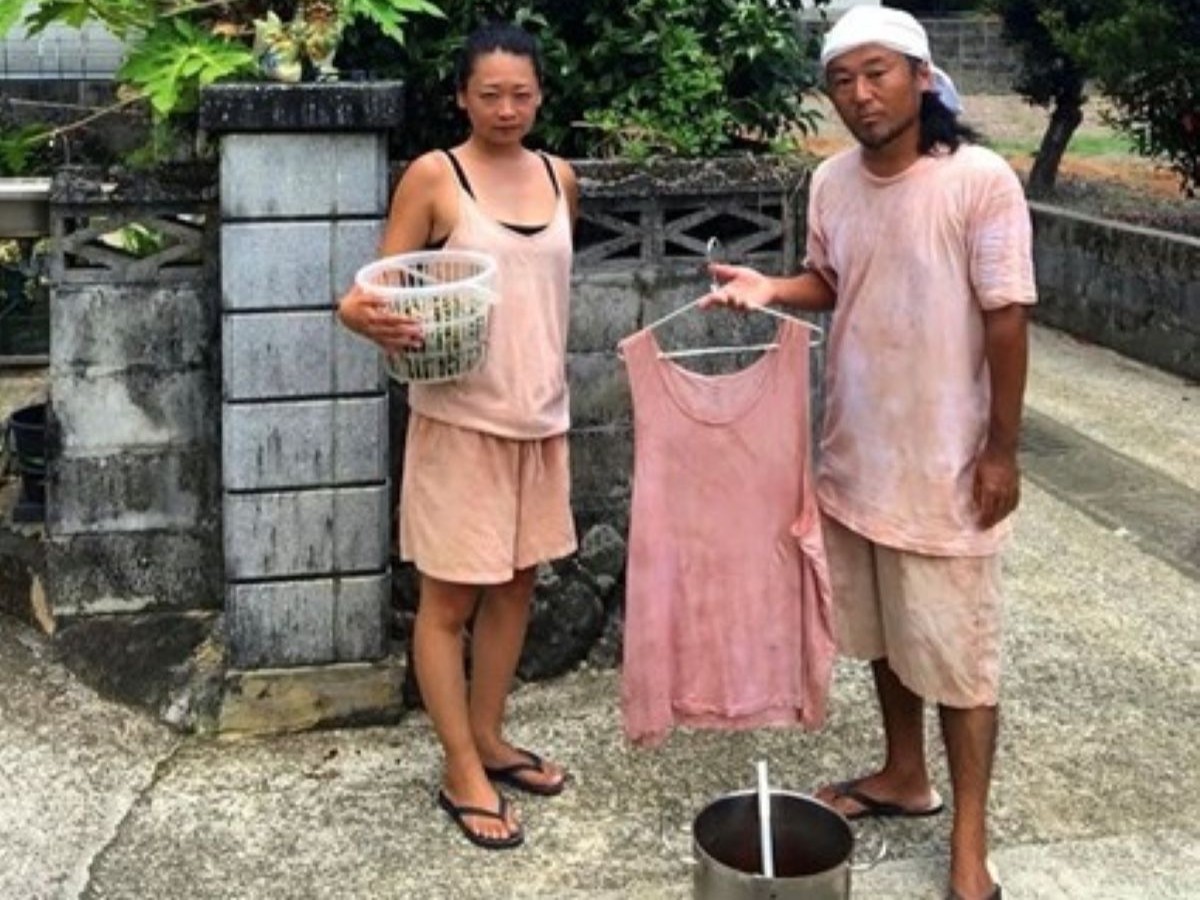 徳之島の弁当販売店「ネリヤカナ屋」(徳之島町亀津)が展開する月桃染めの衣料ブランド「月桃獅子徳之島」のウエディング衣装が10月19日、島内で行われたフォトウエディングに初めて貸し出された。