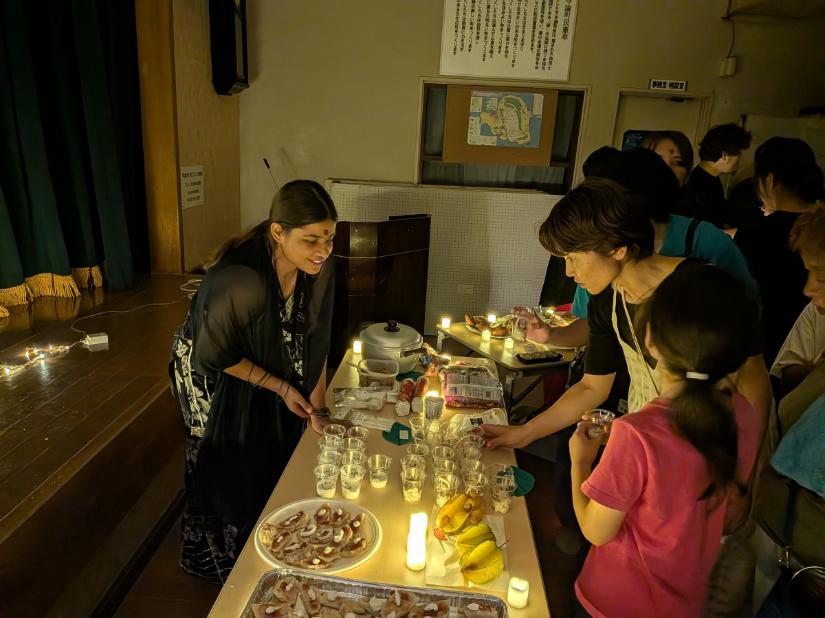 インドからの留学生が企画したヒンドゥー教の伝統行事「光の祭り(ディーワーリー)」が10月24日、与論島の茶花自治公民館(与論町茶花)で開かれた。
