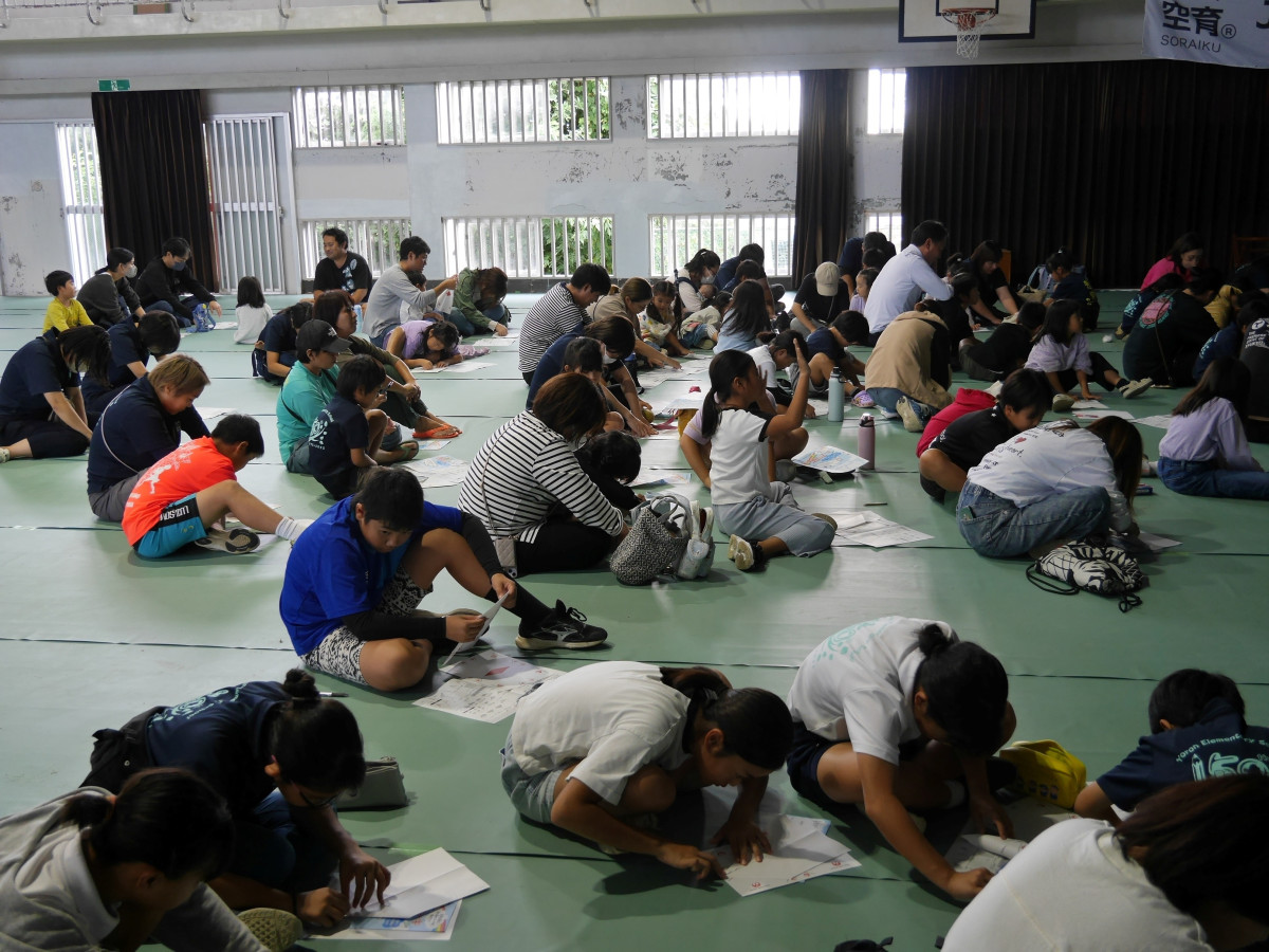 与論小学校(与論町朝戸)で12月13日、創立150周年式典に合わせ「JAL航空教室、折り紙ヒコーキ教室」が開かれた。