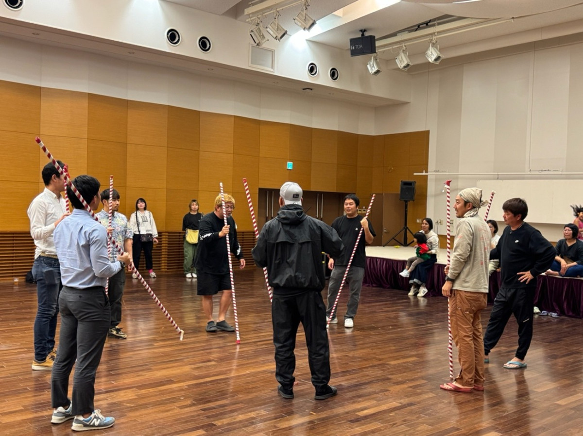 地元の青年団協力のもと、伊仙町指定無形民俗文化財の棒踊りを体験