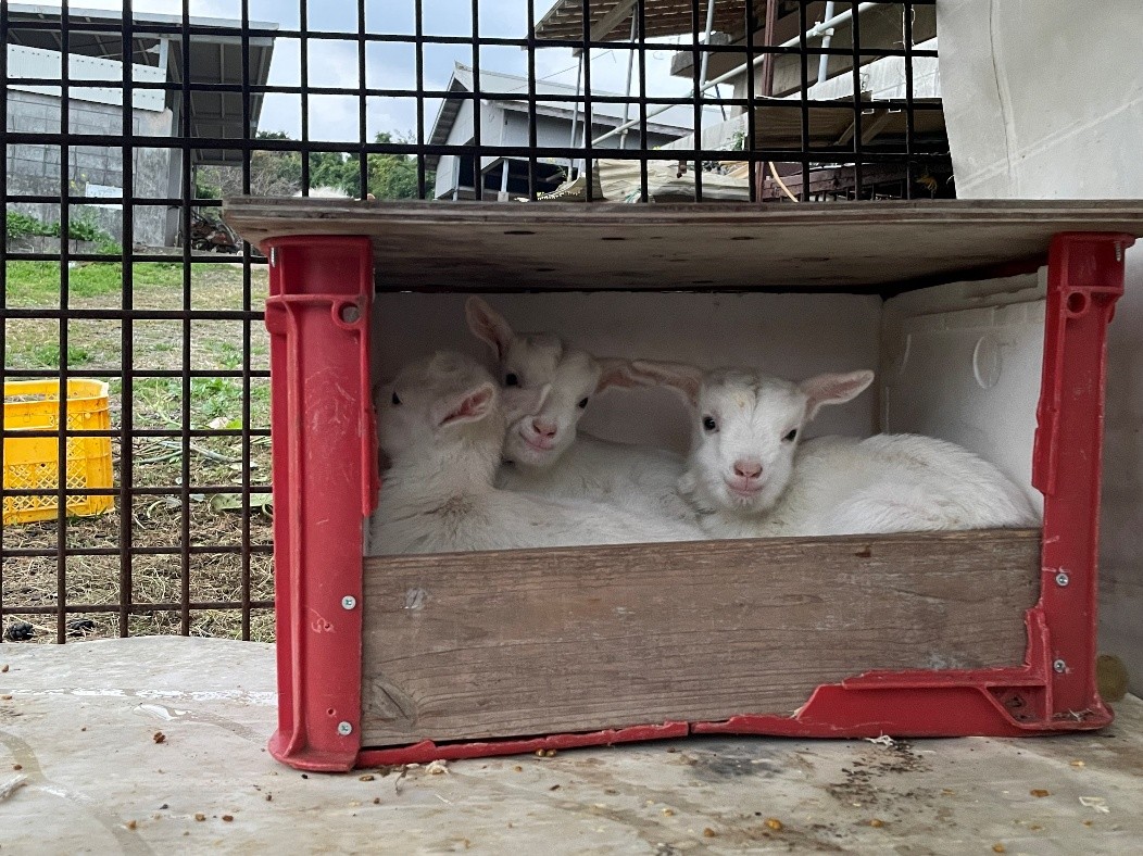 徳之島伊仙町犬田布に住む牧本敬次郎さん家族が飼っている雌ヤギが1月26日、5頭の子ヤギを出産し、地元ではちょっとした観光名所になっている。