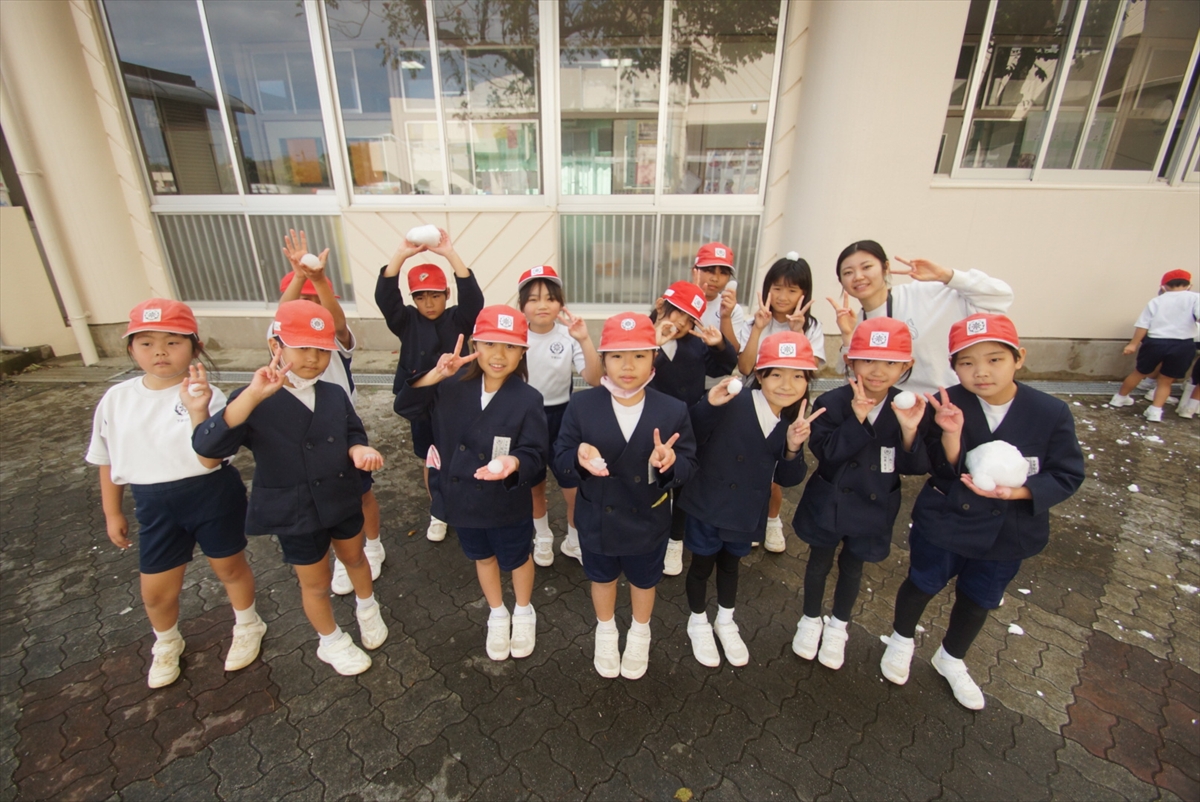 雪と記念撮影