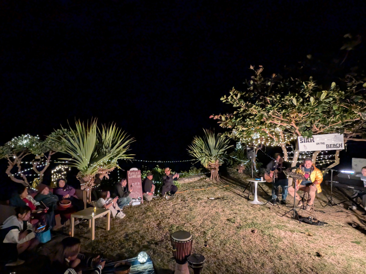 「冬の海でも遊ぼうよ」を合言葉に、光と音楽、飲食を楽しむライトアップイベント「STAR ON THE BEACH(スター・オン・ザ・ビーチ)」が2月13日・14日の2日間、与論島の「くじらカフェ」(与論町立長)で開催された。