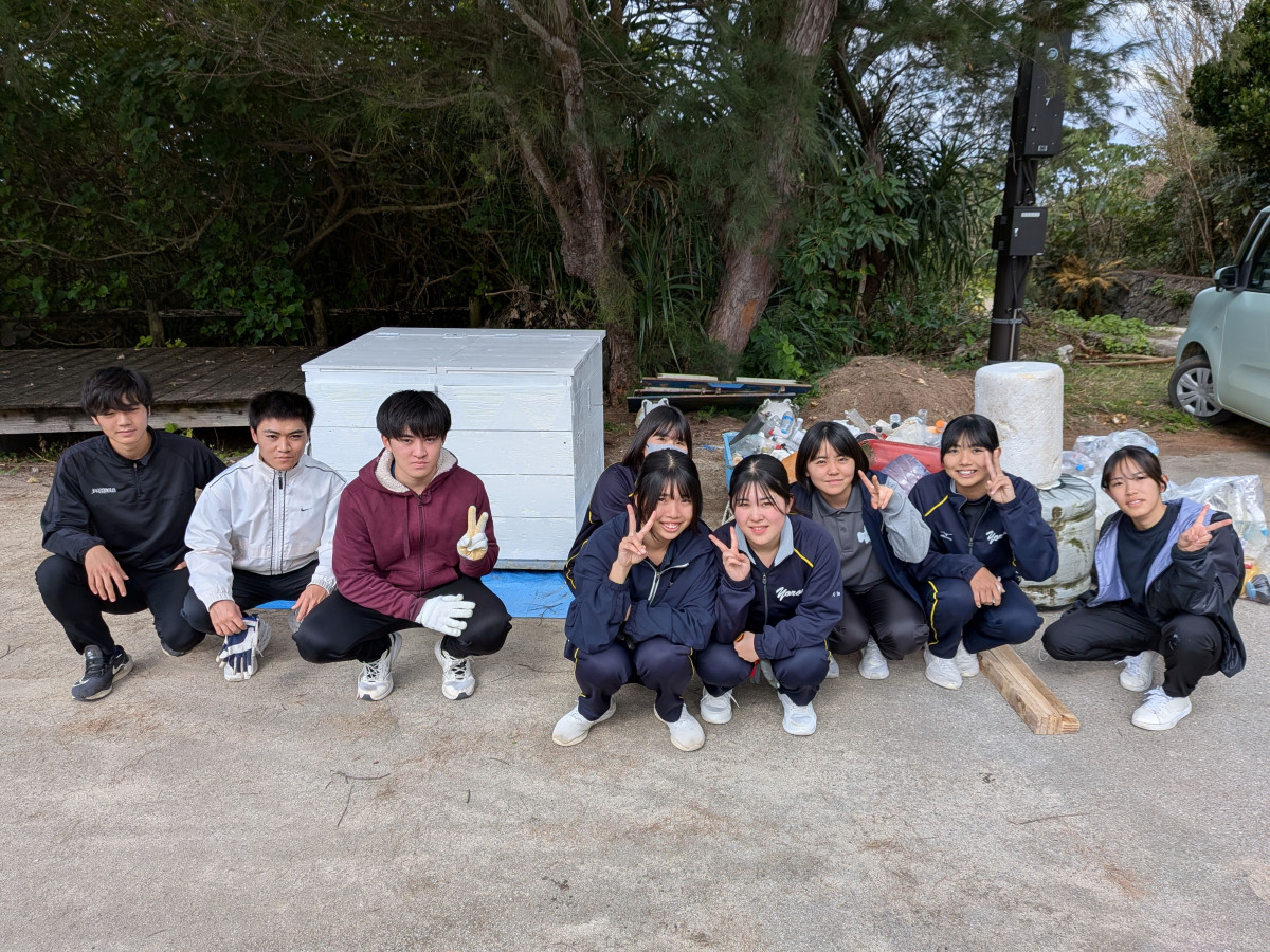 島を離れる「島立ち」を控えた与論高校の3年とその後輩が、与論島のウドノス海岸と茶花海岸(与論町茶花)で海岸の美化を目的に設けた海ごみ回収箱「拾い箱」の塗装ボランティアを行い、2日間で延べ16人が参加した。
