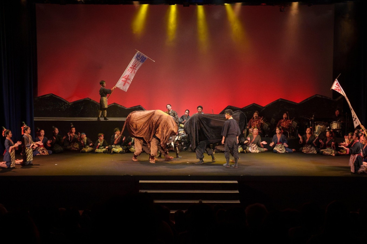 藩政時代から続く徳之島の伝統文化「闘牛」の様子を演じるシーン(写真提供=結シアター手舞)