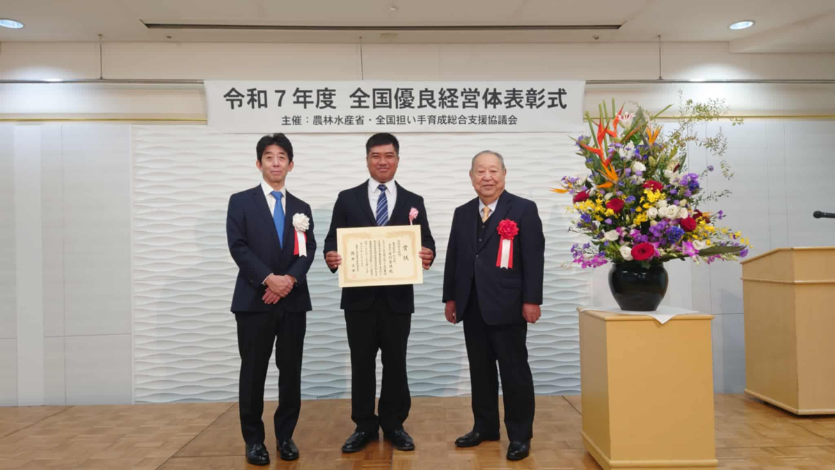 鹿児島市内で行われた表紙式の様子(中央が皆村社長)