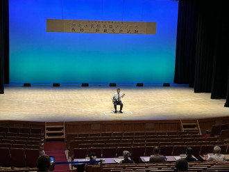 神戸市出身で沖永良部島のルーツを持つ鈴木健一さんが11月23日、あしびの郷・ちな(知名町瀬利覚)で開催された沖永良部民謡コンクールに出場。