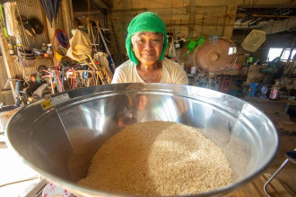 沖永良部島和泊町の国頭字に住む橋口盛一さんが9月29日、自身の倉庫で今年収穫した米を精米した。