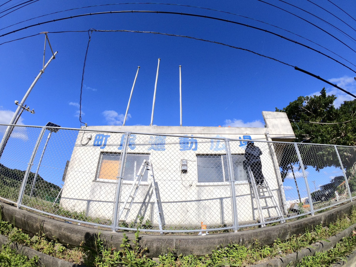 塗り替え作業終了間近の倉庫
