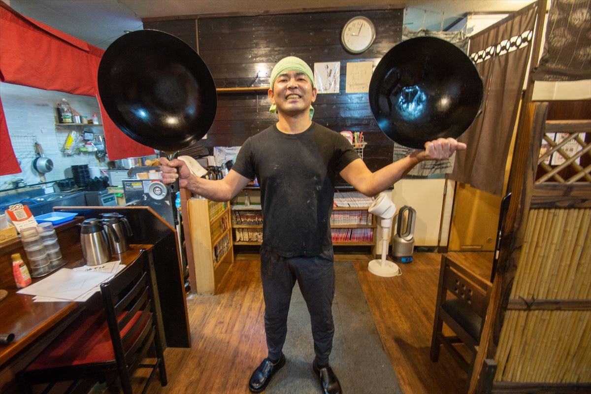 沖永良部島でうどんやラーメンを提供する山田製麺(和泊町和泊)店主の山田英生さんが8年間使い続けた「2代目」中華鍋が壊れ、1月13日に寿命を迎えた。